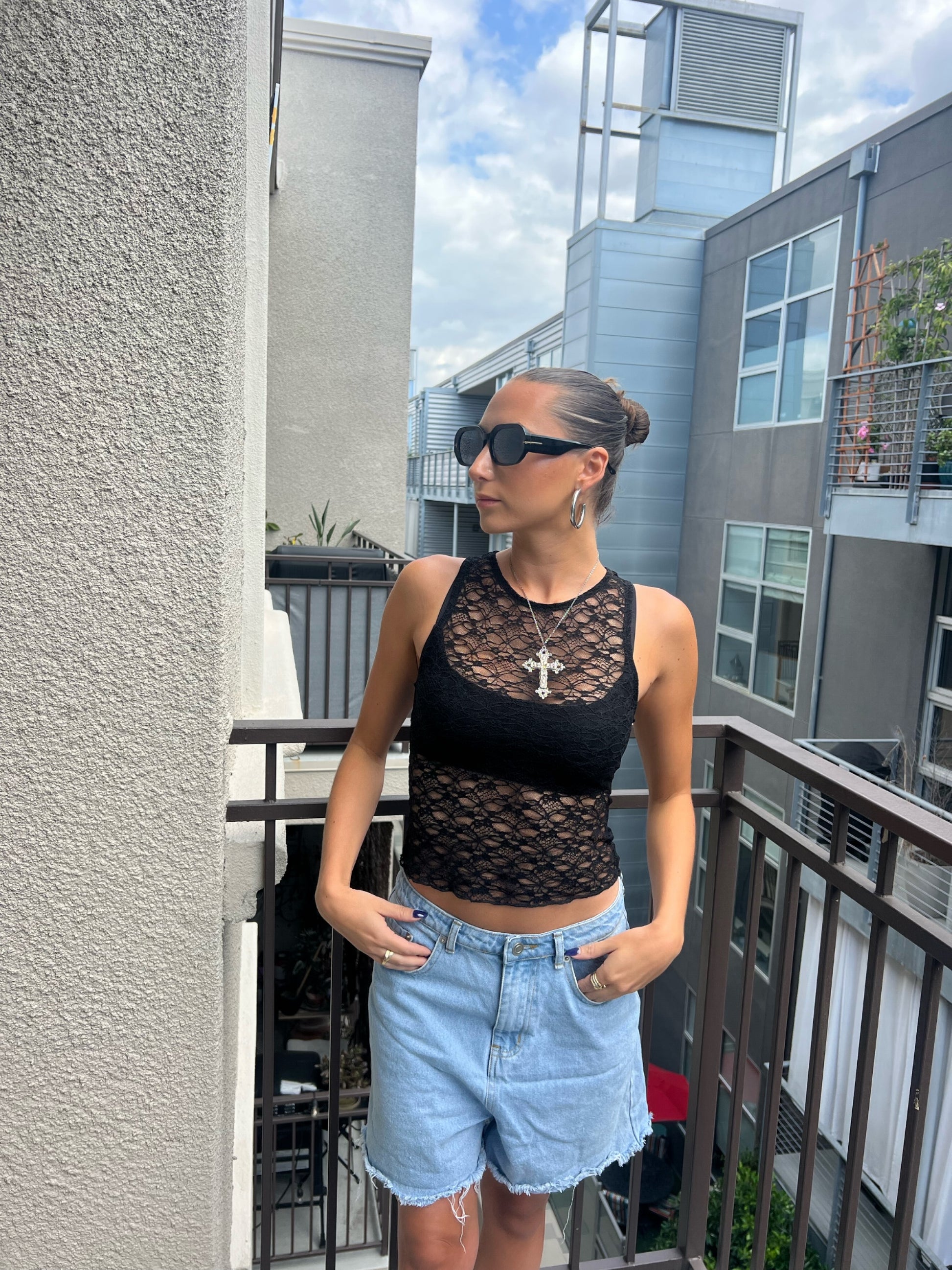 Oversized cut off shorts.
